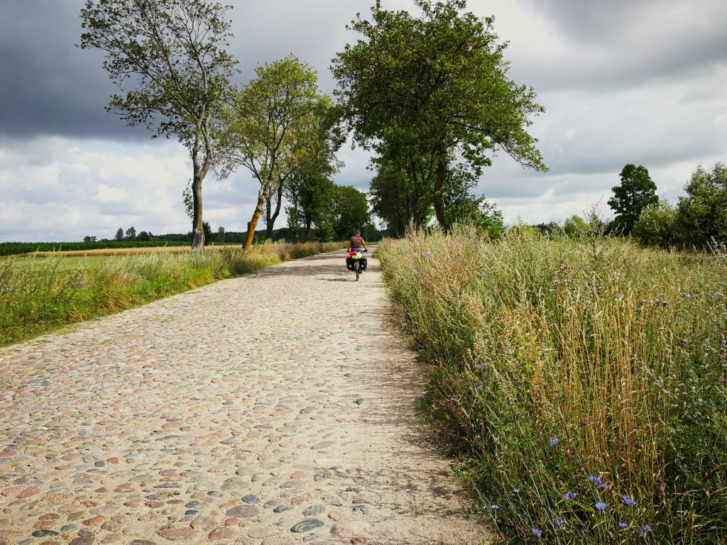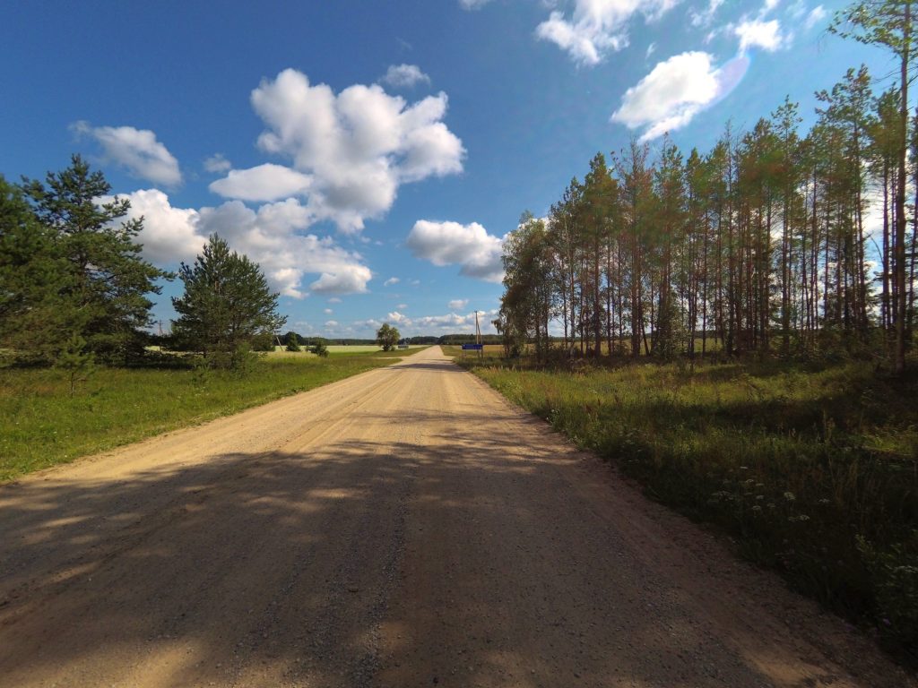 A la frontière une banderole indique : “Bienvenue dans le pays des lacs et des paysages magnifiques”. Et c’est vrai ! Les lacs ont une eau cristalline et grâce aux aires de bivouacs aménagées il est simple d’y monter sa tente pour la nuit. En Lituanie, la plupart du temps, ces aires disposent d’un emplacement pour faire un feu de camp, de tables de pique-nique, d’un abri et de toilettes sèches. Assez peu de portions sont goudronnées, et la circulation est faible.