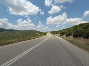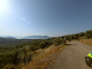 En Grèce, la moitié sud du pays est très sèche et l’itinéraire traverse des vallées arides entourées de collines rocheuses. Ce n’est qu’au niveau de Lamia au kilomètre 300 que les premiers champs d’oliviers font leur apparition, offrant une ombre salutaire. Puis l’itinéraire serpente entre les collines et la mer, offrant des paysages magnifiques. Les villages, les habitants très sympathiques, les routes peu fréquentées, les petites chapelles à tous les coins de rues, les épiceries, et les fréquents point d’eau sauront vous séduire.